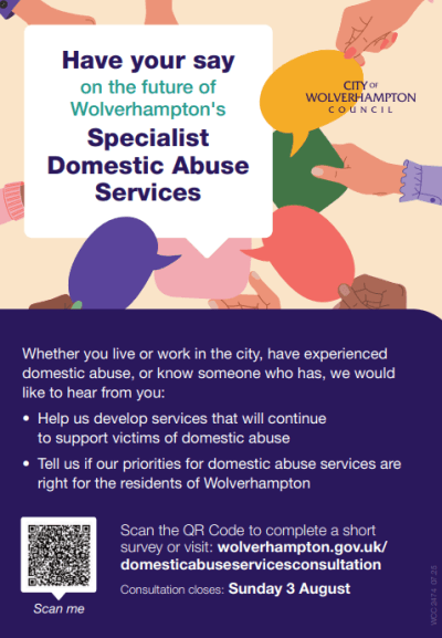 The consultation is available at The Future of Wolverhampton’s Specialist Domestic Abuse Services – Have Your Say until midnight next Sunday 3 August, 2025.