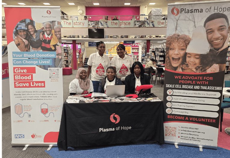 In Walsall, Plasma of Hope is at the forefront of community-based support for individuals and families affected by sickle cell. Their work includes community Fridays for peer support and information sharing, befriending and wellbeing services, community projects, blood donation campaigns, warm referrals to housing, welfare, employment and ESOL services and education talks in schools and workplaces.